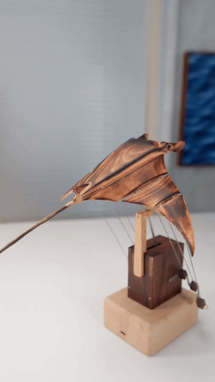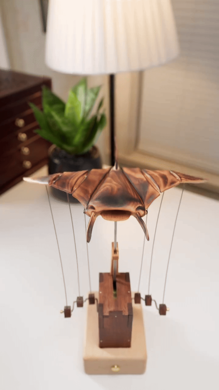 Notre raie manta en noyer glisse au rythme de la manivelle, transformant stress et agitation en douceur.